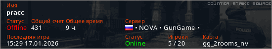 Играет на Counter Strike Source сервере. Страна: РоссияПервый раз замечен 19:37 18.02.2023