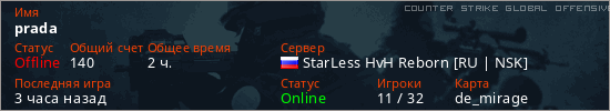 Играет на Counter Strike Global Offensive сервере. Страна: РоссияПервый раз замечен 12:41 03.02.2026