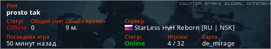 Играет на Counter Strike Global Offensive сервере. Страна: РоссияПервый раз замечен 23:46 28.02.2026