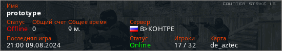 Играет на Counter Strike 1.6 сервере. Страна: РоссияПервый раз замечен 19:02 05.08.2023