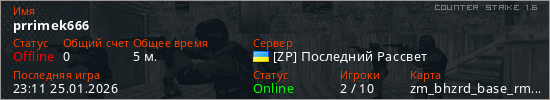 Играет на Counter Strike 1.6 сервере. Страна: УкраинаПервый раз замечен 23:09 25.01.2026