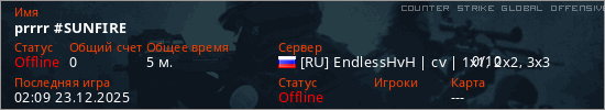 Играет на Counter Strike Global Offensive сервере. Страна: РоссияПервый раз замечен 02:05 23.12.2025