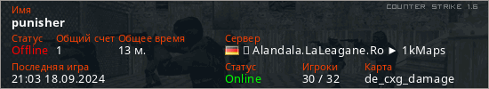 Последний раз был в сети 21:03 18.09.2024 Игрок с таким ником замечен на 26 серверах