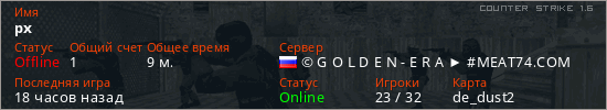 Играет на Counter Strike 1.6 сервере. Страна: РоссияПервый раз замечен 10:17 12.10.2025