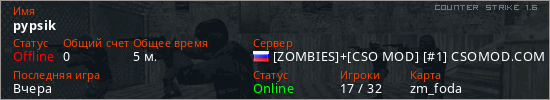 Последний раз был в сети Вчера Игрок с таким ником замечен на 32 серверах