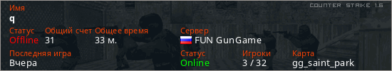 Играет на Counter Strike 1.6 сервере. Страна: РоссияПервый раз замечен 15:23 13.11.2023