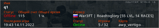 Играет на Counter Strike 1.6 сервере. Страна: РоссияПервый раз замечен 03:26 31.10.2022