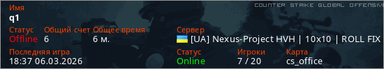 Играет на Counter Strike Global Offensive сервере. Страна: УкраинаПервый раз замечен 18:27 06.03.2026