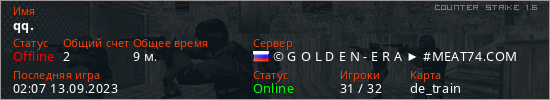 Играет на Counter Strike 1.6 сервере. Страна: РоссияПервый раз замечен 21:55 18.06.2023