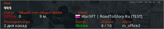 Играет на Counter Strike 1.6 сервере. Страна: РоссияПервый раз замечен 11:06 19.01.2026