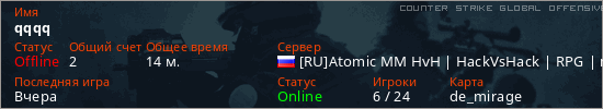 Играет на Counter Strike Global Offensive сервере. Страна: РоссияПервый раз замечен 05:36 08.03.2026
