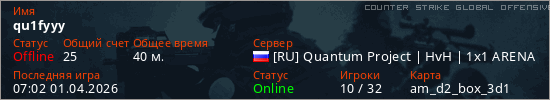 Играет на Counter Strike Global Offensive сервере. Страна: РоссияПервый раз замечен 11:03 27.03.2026
