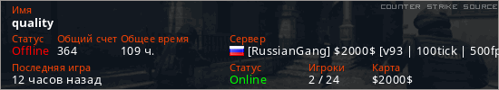 Играет на Counter Strike Source сервере. Страна: РоссияПервый раз замечен 09:57 07.04.2025