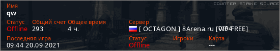 Играет на Counter Strike Source сервере. Страна: РоссияПервый раз замечен 01:21 23.07.2020