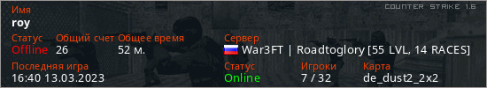 Играет на Counter Strike 1.6 сервере. Страна: РоссияПервый раз замечен 19:54 24.10.2022