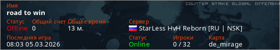 Играет на Counter Strike Global Offensive сервере. Страна: РоссияПервый раз замечен 06:39 05.03.2026