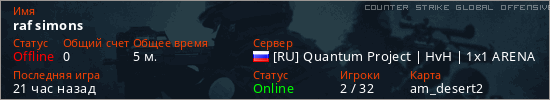 Играет на Counter Strike Global Offensive сервере. Страна: РоссияПервый раз замечен 09:34 27.03.2026
