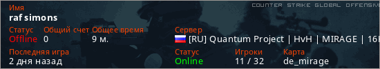 Играет на Counter Strike Global Offensive сервере. Страна: РоссияПервый раз замечен 19:20 24.03.2026