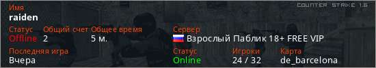 Последний раз был в сети Вчера Игрок с таким ником замечен на 11 серверах