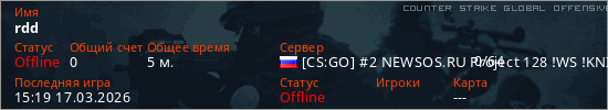 Играет на Counter Strike Global Offensive сервере. Страна: РоссияПервый раз замечен 15:14 17.03.2026