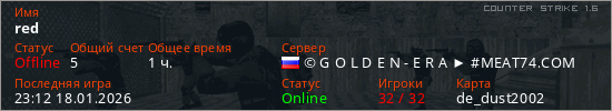 Играет на Counter Strike 1.6 сервере. Страна: РоссияПервый раз замечен 05:40 10.03.2023