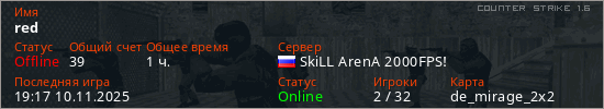 Играет на Counter Strike 1.6 сервере. Страна: РоссияПервый раз замечен 10:37 07.07.2022