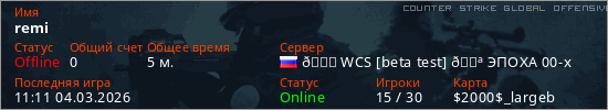 Играет на Counter Strike Global Offensive сервере. Страна: РоссияПервый раз замечен 11:07 04.03.2026