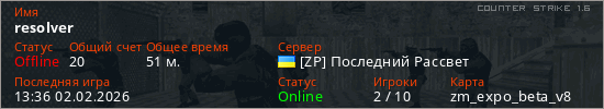 Играет на Counter Strike 1.6 сервере. Страна: УкраинаПервый раз замечен 16:04 01.02.2026