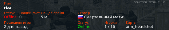 Играет на Counter Strike 1.6 сервере. Страна: РоссияПервый раз замечен 07:07 24.12.2025