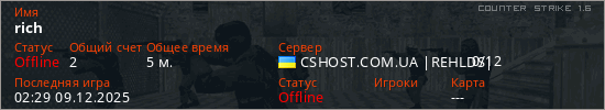 Играет на Counter Strike 1.6 сервере. Страна: УкраинаПервый раз замечен 02:15 09.12.2025