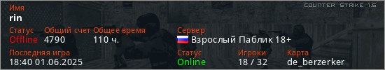 Последний раз был в сети 18:40 01.06.2025 Игрок с таким ником замечен на 22 серверах