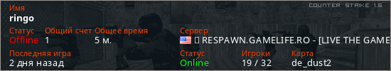 Играет на Counter Strike 1.6 сервере. Страна: СШАПервый раз замечен 17:16 23.03.2026