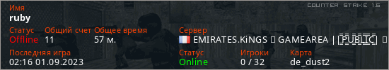 Последний раз был в сети 02:16 01.09.2023 Игрок с таким ником замечен на 19 серверах