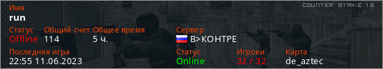 Играет на Counter Strike 1.6 сервере. Страна: РоссияПервый раз замечен 05:01 04.12.2019
