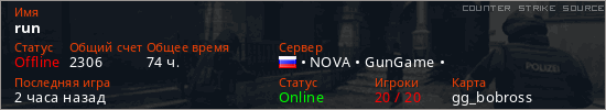Играет на Counter Strike Source сервере. Страна: РоссияПервый раз замечен 22:17 24.03.2023