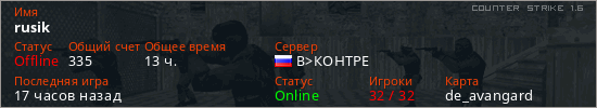 Последний раз был в сети 16 часов назад Игрок с таким ником замечен на 14 серверах