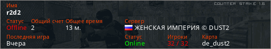 Последний раз был в сети Вчера Игрок с таким ником замечен на 11 серверах