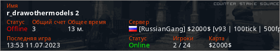 Играет на Counter Strike Source сервере. Страна: РоссияПервый раз замечен 10:26 25.06.2023