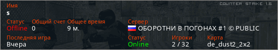 Играет на Counter Strike 1.6 сервере. Страна: РоссияПервый раз замечен 15:30 19.01.2026