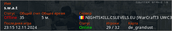 Последний раз был в сети 23:15 12.11.2024 Игрок с таким ником замечен на 9 серверах