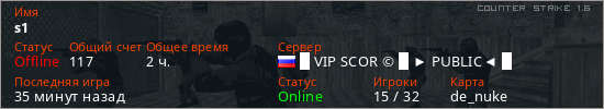 Играет на Counter Strike 1.6 сервере. Страна: РоссияПервый раз замечен 07:32 16.11.2025
