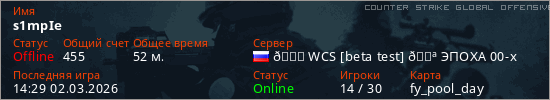 Играет на Counter Strike Global Offensive сервере. Страна: РоссияПервый раз замечен 15:13 27.02.2026