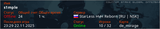 Играет на Counter Strike Global Offensive сервере. Страна: РоссияПервый раз замечен 19:34 10.10.2025