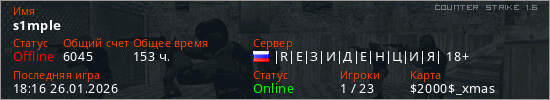 Играет на Counter Strike 1.6 сервере. Страна: РоссияПервый раз замечен 16:53 06.02.2019