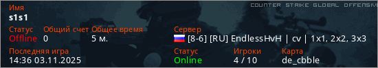 Играет на Counter Strike Global Offensive сервере. Страна: РоссияПервый раз замечен 14:03 03.11.2025
