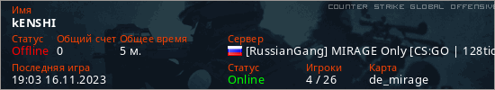 Играет на Counter Strike Global Offensive сервере. Страна: РоссияПервый раз замечен 19:01 16.11.2023