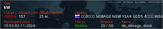 Играет на Counter Strike Global Offensive сервере. Страна: РоссияПервый раз замечен 22:52 30.10.2024