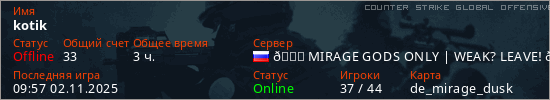 Последний раз был в сети 09:57 02.11.2025 Игрок с таким ником замечен на 32 серверах