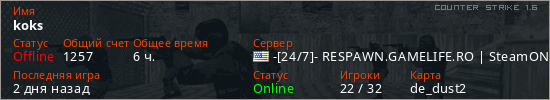 Играет на Counter Strike 1.6 сервере. Страна: СШАПервый раз замечен 02:03 31.01.2025