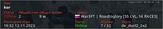 Играет на Counter Strike 1.6 сервере. Страна: РоссияПервый раз замечен 21:21 25.03.2023